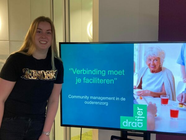 Wat is de toegevoegde waarde van community management binnen ouderenzorg? Deze vraag lag ten grondslag aan de afstudeerscriptie van Tori Groen. Voor Draaijer verdiepte zij zich in het onderwerp community management. Vanuit Draaijer merken we uit de markt dat er meer behoefte komt aan verbinding en sociaal contact. Eenzaamheid heeft een negatief effect op het welzijn van ouderen en zodanig wordt community management in de ouderenzorg noodzakelijker.